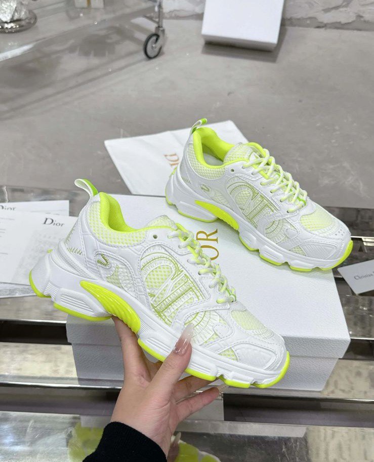 Confectionnées en mesh respirant et cuir de veau lisse, elles offrent une silhouette moderne et sportive, sublimée par des finitions raffinées typiques de la Maison Dior.